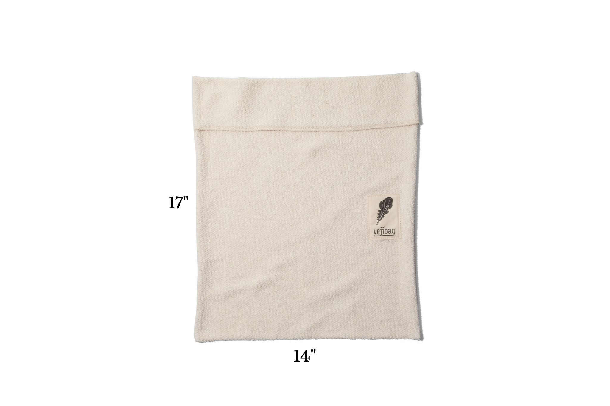 Our largest Vejibag yet! The Extra Large Vejibag (once called the "Chef bag") can fit several heads of lettuce, lots of kale, bundles of collards, or more cucumbers than you'd need for a gallon of pickles. Mix and match your veggies in this bag, or as we like to do, fill it 5 heads of romaine lettuce and munch on fresh, crisp salads for the next couple of weeks!