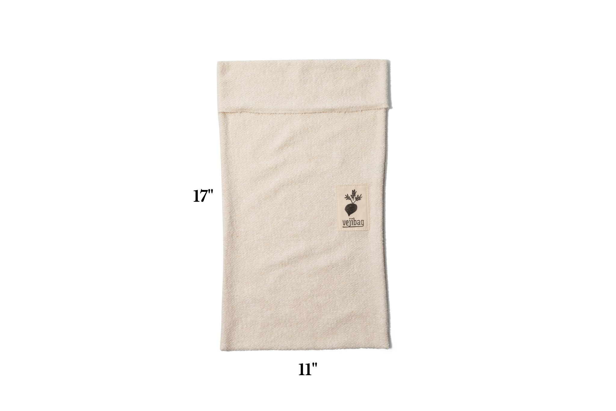 Large Vejibags are great for extending the life of your kale, celery, zucchini, and leafy heads of lettuce or loose leafy greens. Keep your veggies crisp and happy in our 100% cotton vegetable bags that are made in the USA. A great pairing with our Standard Vejibag, or as a produce bag for gardeners with lots of vegetables to harvest.
